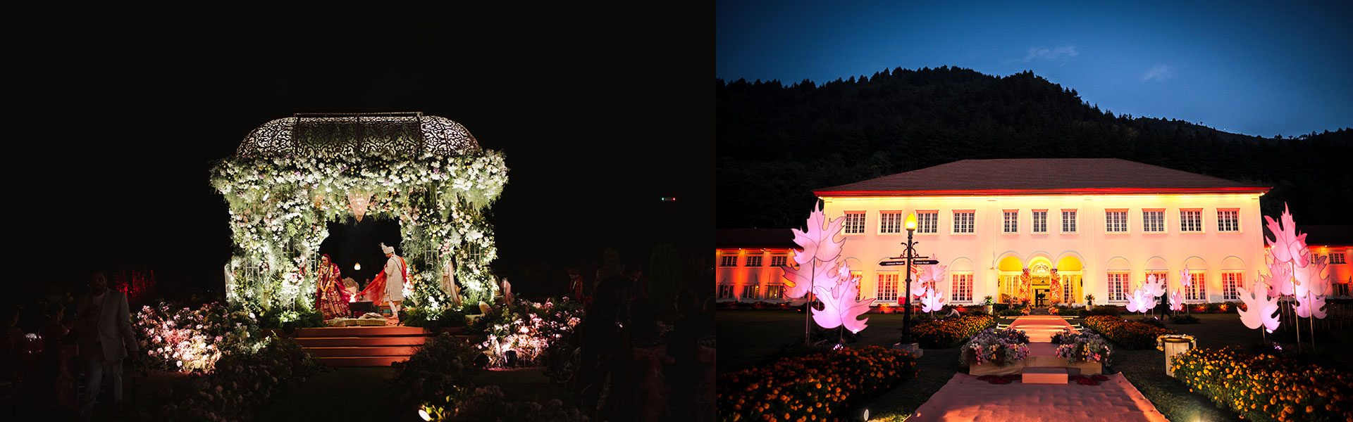 The sprawling gardens with their dazzling flowerbeds, century old Chinar trees scenic walkways and water bodies offer enchanting settings for wedding celebrations.